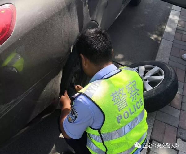 正定交警秒变“修车工” 暖心举动显真情
